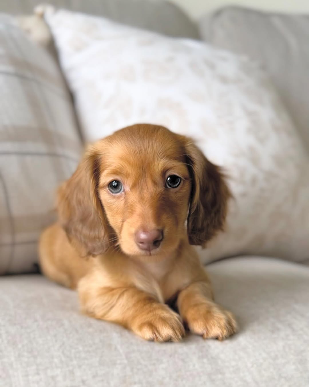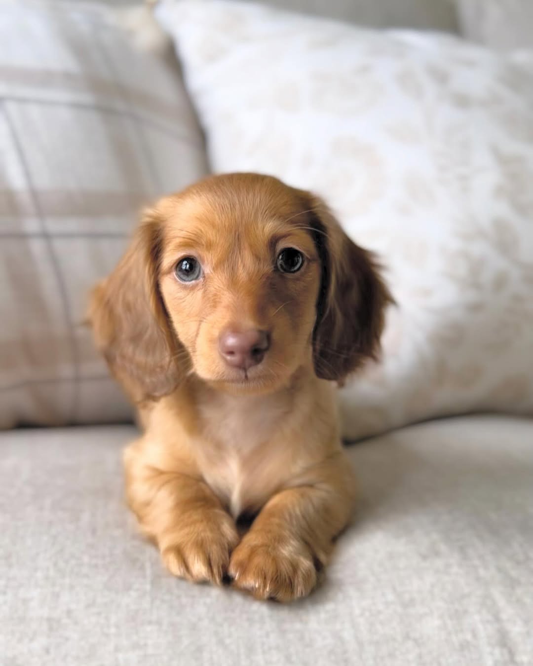 Lindie has a soft golden coat that gleams in the light and eyes that seem to smile back at you. She’s an affectionate little explorer who loves cozy spots and gentle attention. Always calm but full of heart, Lindie brings a quiet joy to every moment the kind of puppy that makes a house feel like home.